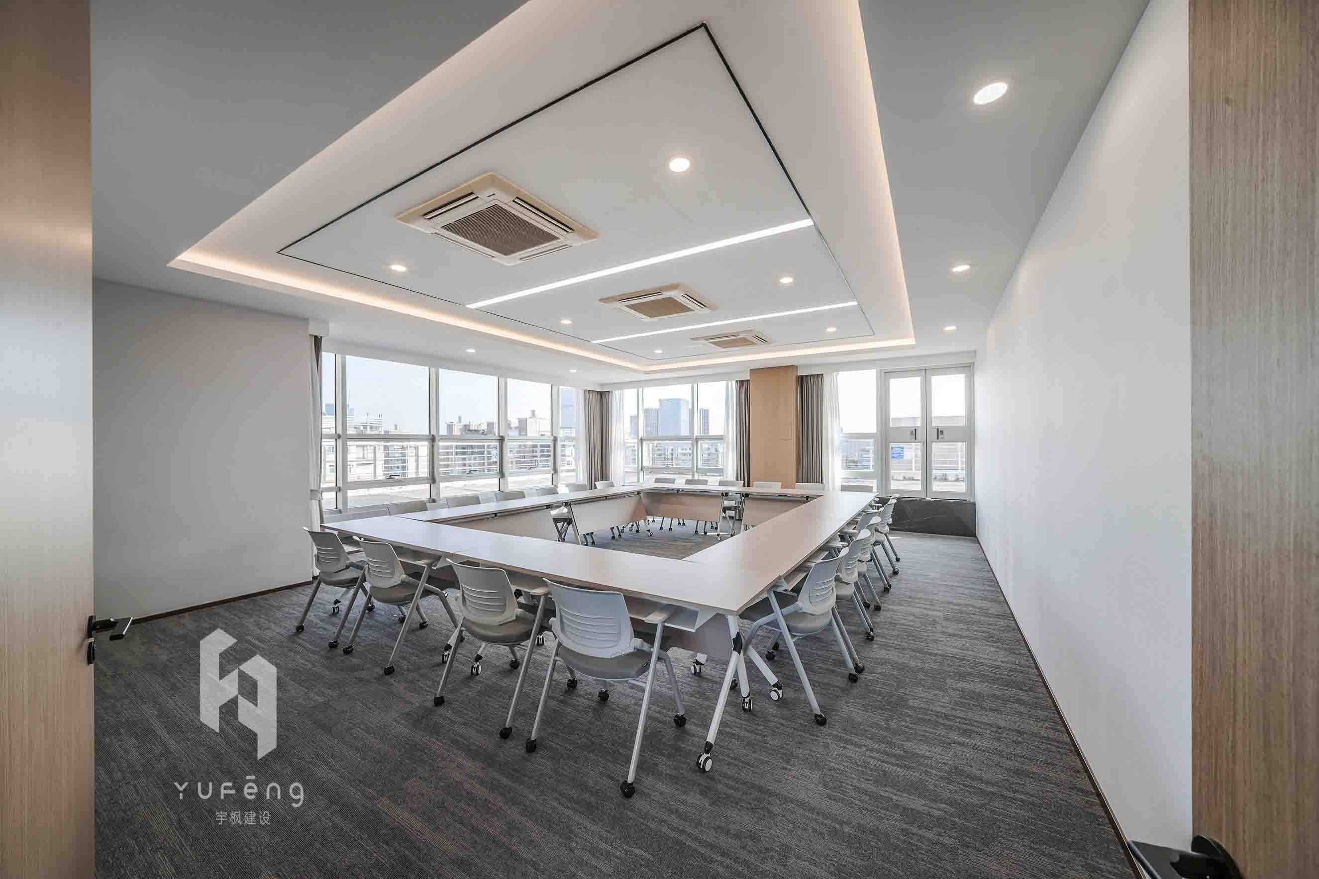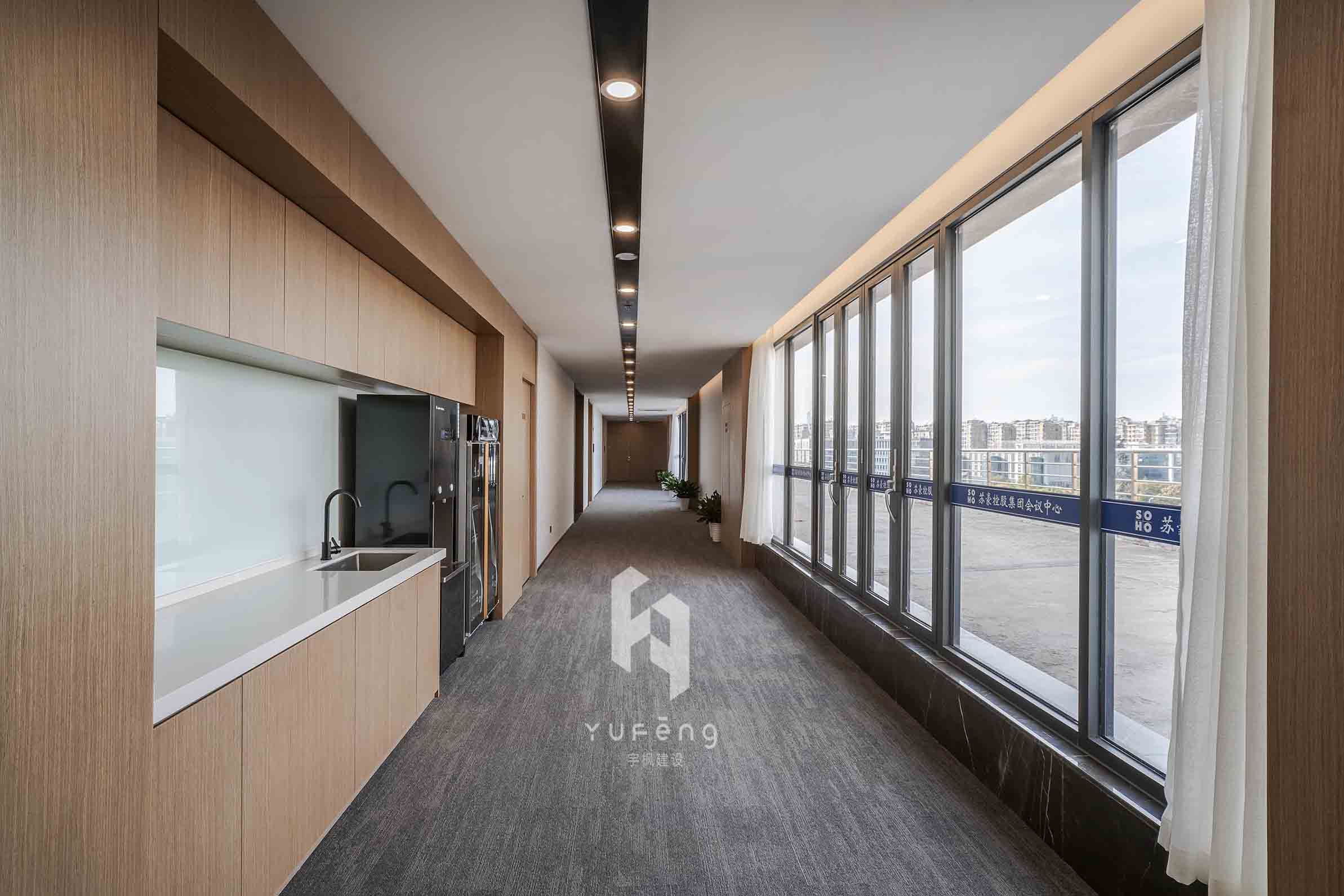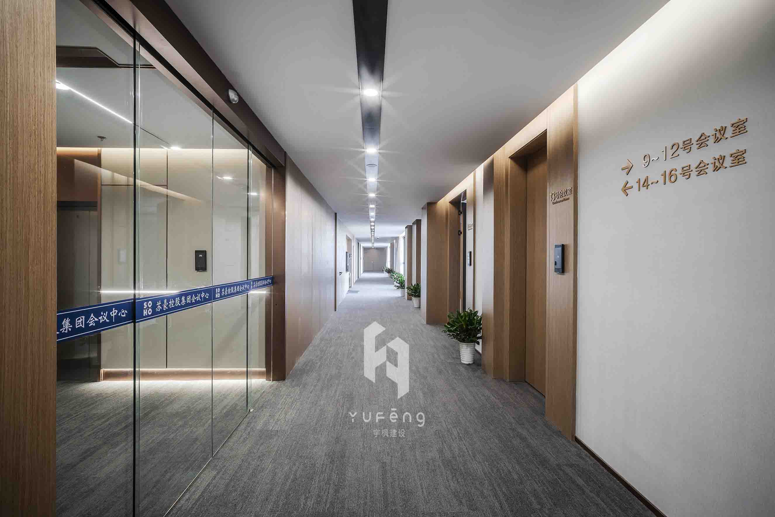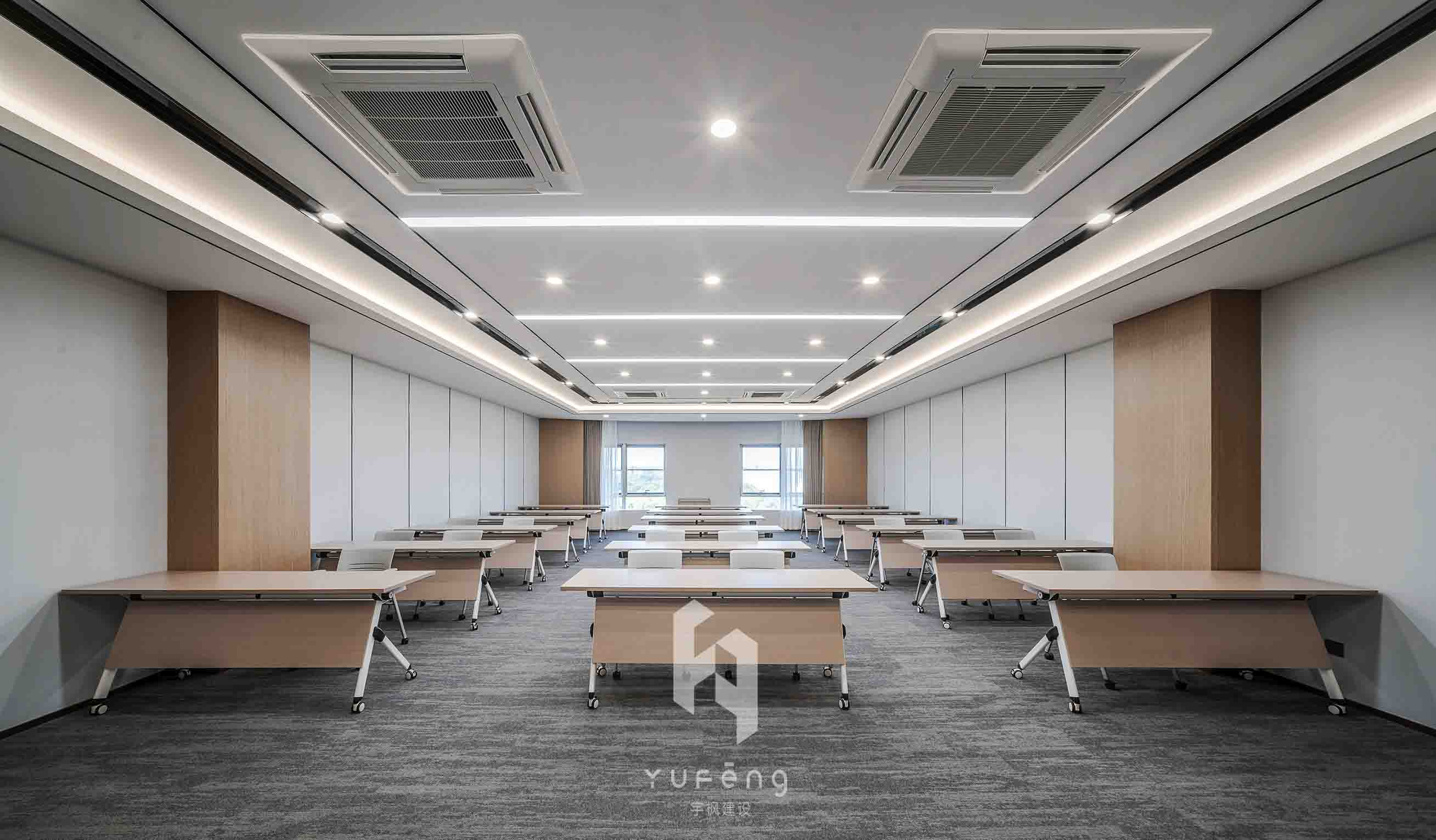 本案设计主要功能是苏豪控股集团的会议中心,大小不同的会议室和报告厅以满足集团的会议需求,整体风格以庄重大气为主,采用木饰面和硬包结合的方式,搭配灰色地毯,高级又不失稳重,会议室天花根据不同会议室面积进行合理分配设计,主照明与辅助照明结合的方式让空间增加了层次感,可根据不同的会议需求合理进行照明控制,达到节约能源的设计需求,家具的选择配置上以移动桌椅为主,满足不同的会议类型,满足多功能的使用功能,增加了空间的多样性。